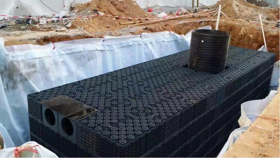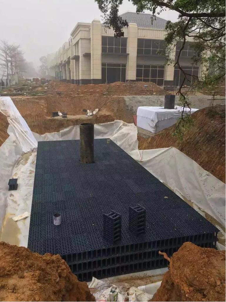 節約空間:雨水模塊安裝在地面以下,上面可繼續建綠化、廣場、運動場等,不占用地面空間。